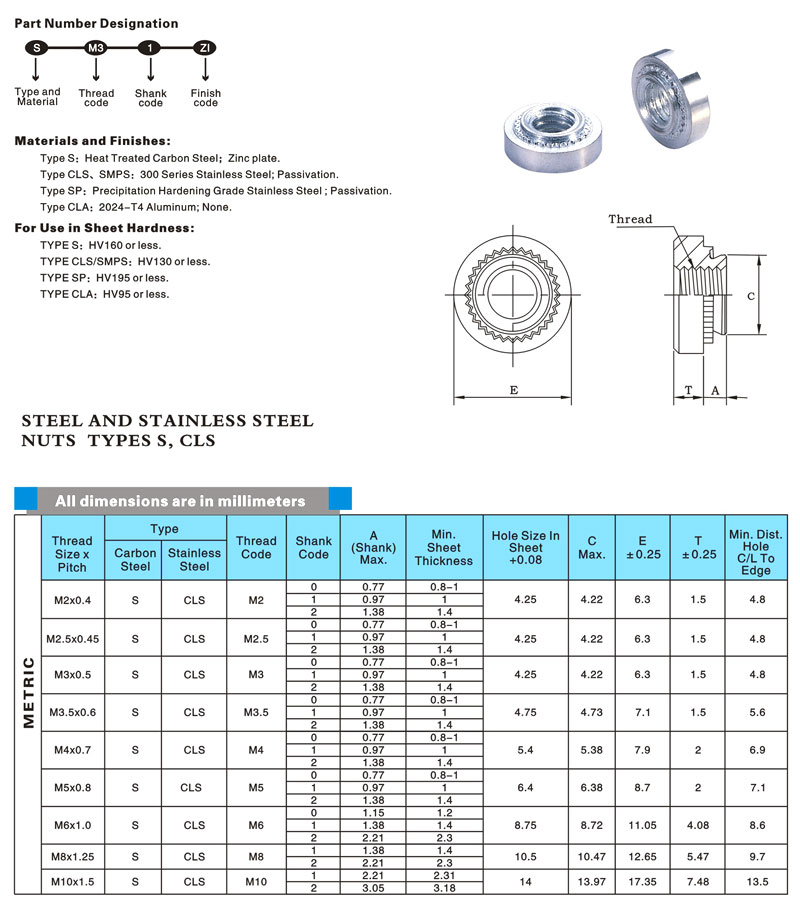 不銹鋼壓鉚螺母M5,規(guī)格:CLS-M5-0/M5-1/M5-2